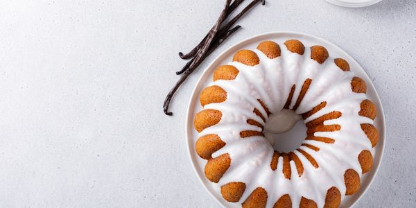 Soft vanilla cake topped with sweet vanilla glaze. Perfect for any occasion.